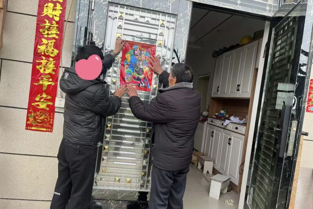 帮教对象和家人一起贴春联